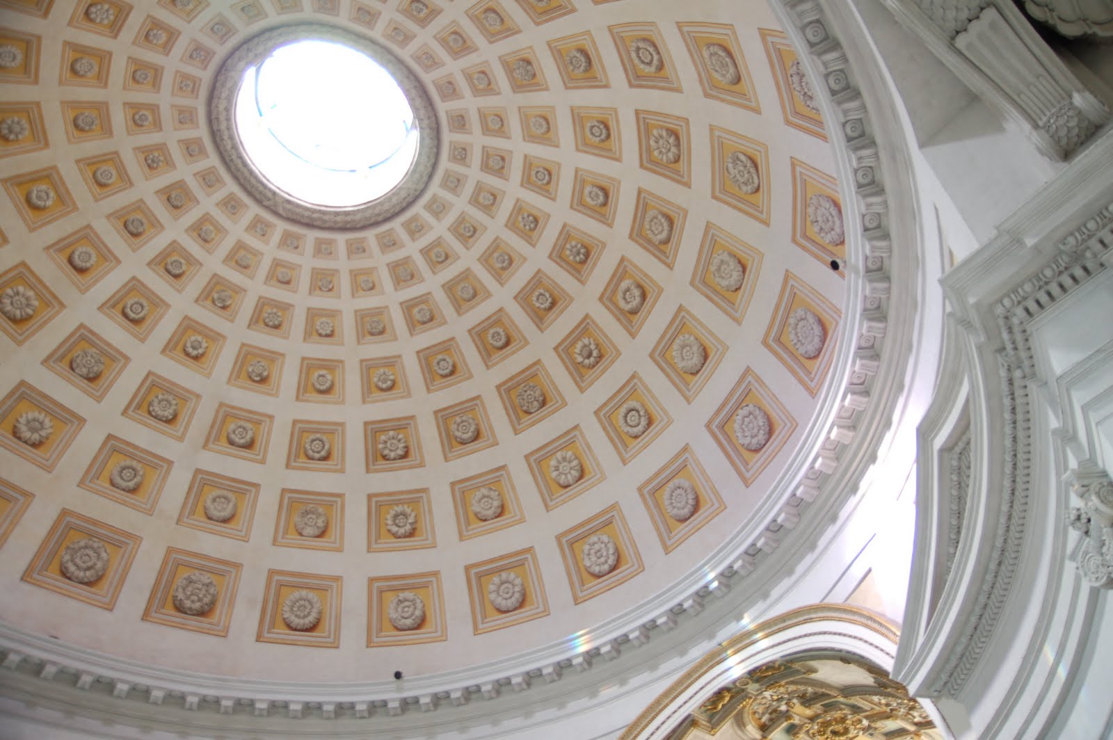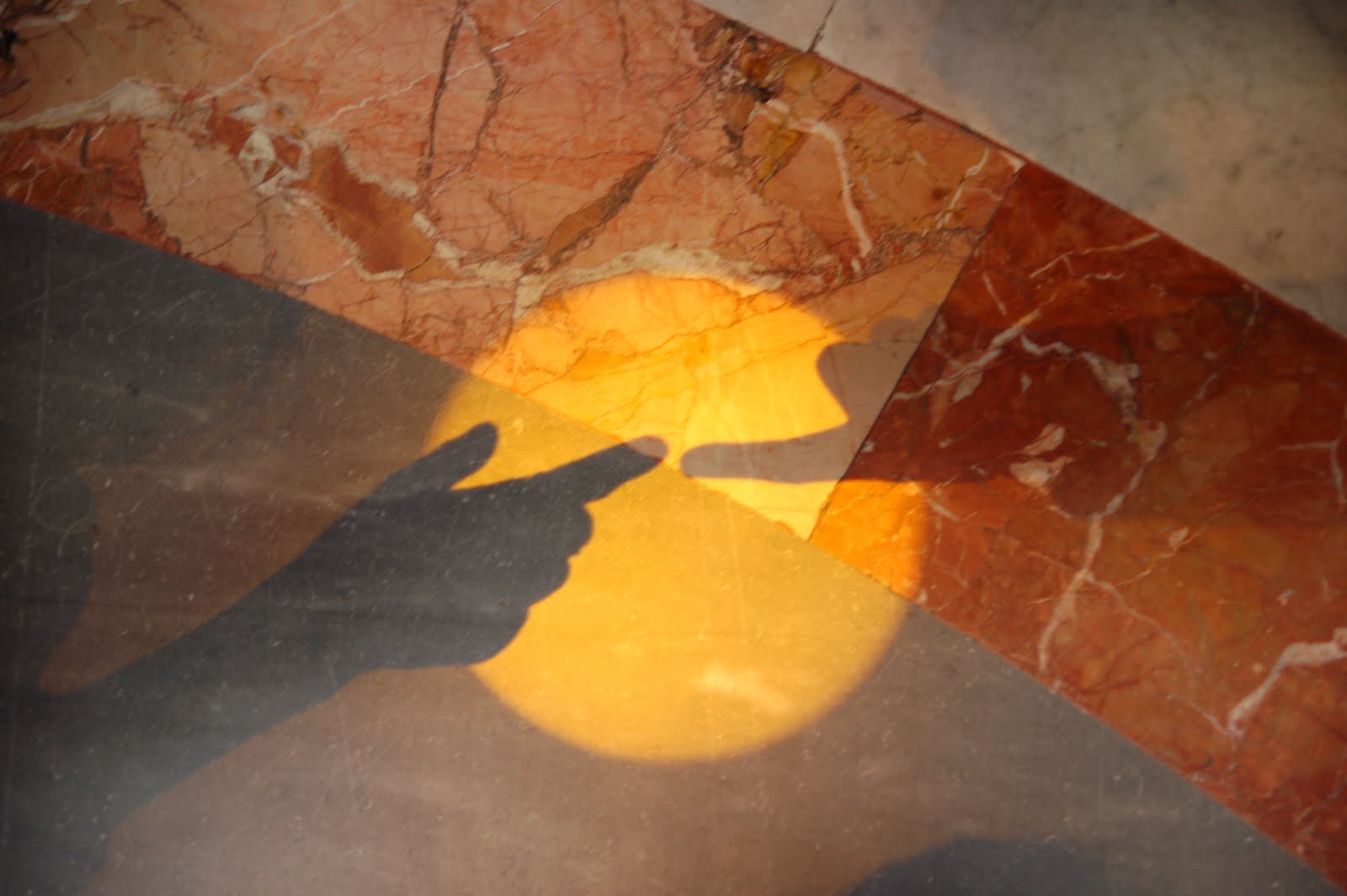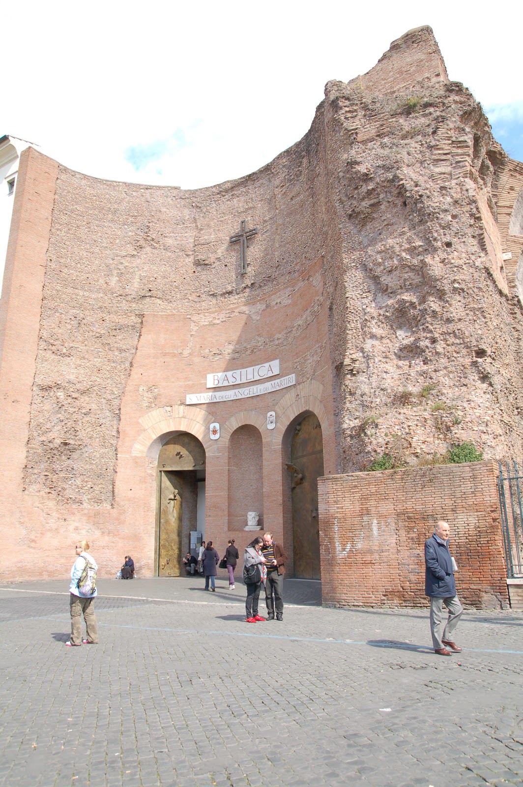 Kościół zaadaptowany z term ma nietypową budowę, mieści zegar słoneczny, który zaintrygował nas w Rzymie, ale niedomyślni nie umieliśmy zgadnąć co to...