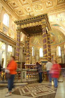 Bazylika Santa Maria Maggiore. Jej zwiedzanie zaczęliśmy... od tyłu. Przez zupełny przypadek. Ulica którą przyszliśmy miała wylot na tyłach świątyni. Wydało nam się to lekko dziwne, że ani drzwi nie ma ani nic... Dobrze że postanowiliśmy obejść kościół wokół. Przegapilibyśmy piękne miejsce.